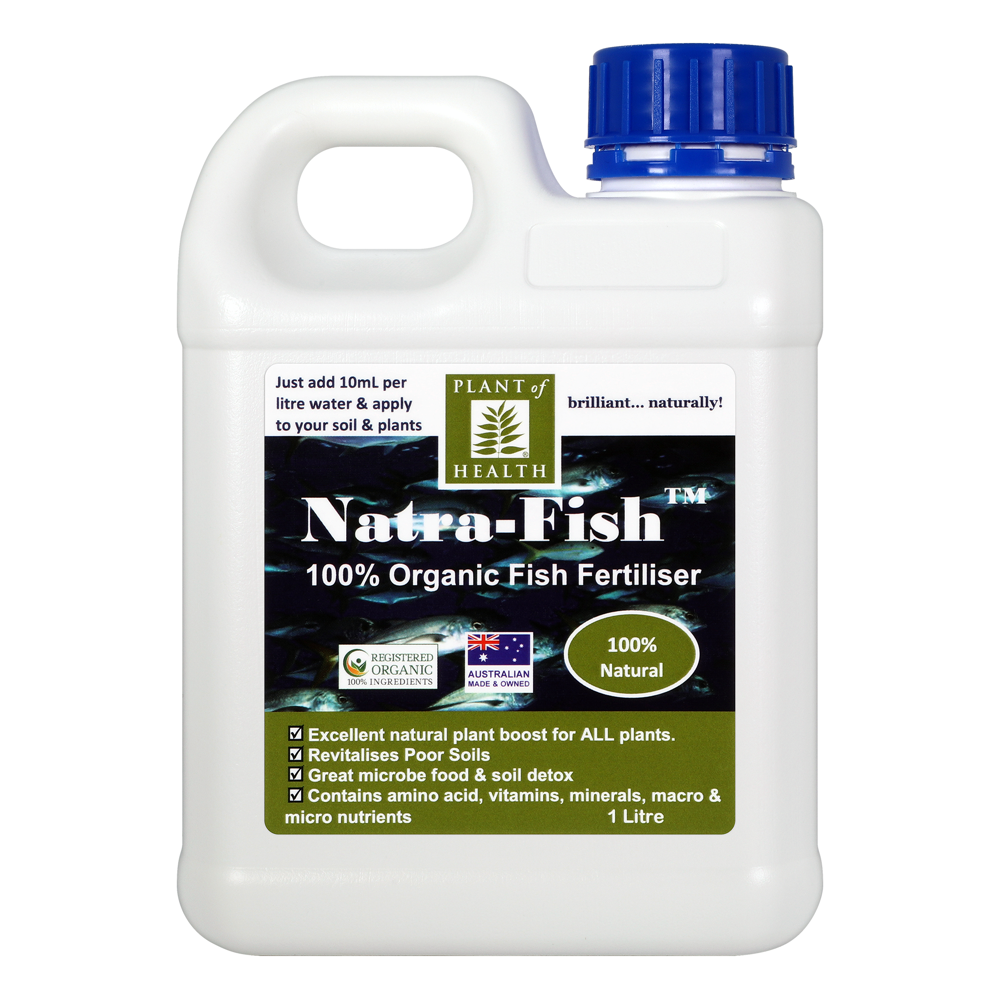 Natra Fish 1 Litre is a 100 percent organic liquid fish fertiliser made from sustainably sourced deep sea fish frames. It contains 45 to 55 percent fish solids and delivers one of the highest natural nitrogen levels found in fish based fertilisers. Rich in amino acids, fatty acids, vitamins, minerals and trace elements, it supports root development, plant health, soil conditioning and microbial activity. Suitable for organic growing and for use on its own or as part of a fertiliser program.